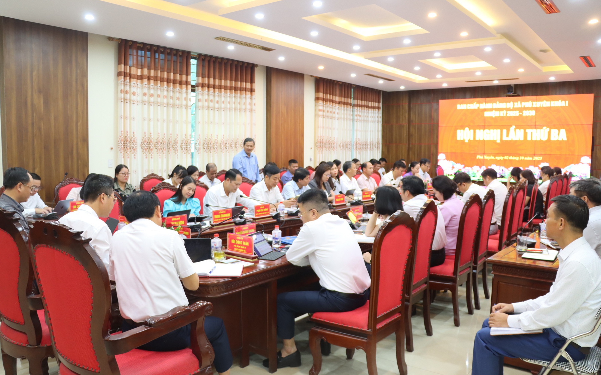 Tại hội nghị, các đại biểu đã được nghe báo cáo kết quả công tác xây dựng Đảng quý III, phương hướng nhiệm vụ quý IV năm 2025; Tờ trình xin ý kiến về Chương trình công tác toàn khoá của BCH Đảng bộ xã khoá I; tờ trình xin ý kiến về Chương trình kiểm tra, giám sát của BCH Đảng bộ xã khoá I; báo cáo về việc thành lập Công đoàn xã Phú Xuyên; báo cáo kết quả thực hiện nhiệm vụ phát triển KTXH, QPAN, tình hình thu chi ngân sách 9 tháng đầu năm, nhiêm vụ trọng tâm 3 tháng cuối năm; báo cáo về phương án việc chuyển đổi "tiểu khu", "tổ dân phố" thành "thôn"…